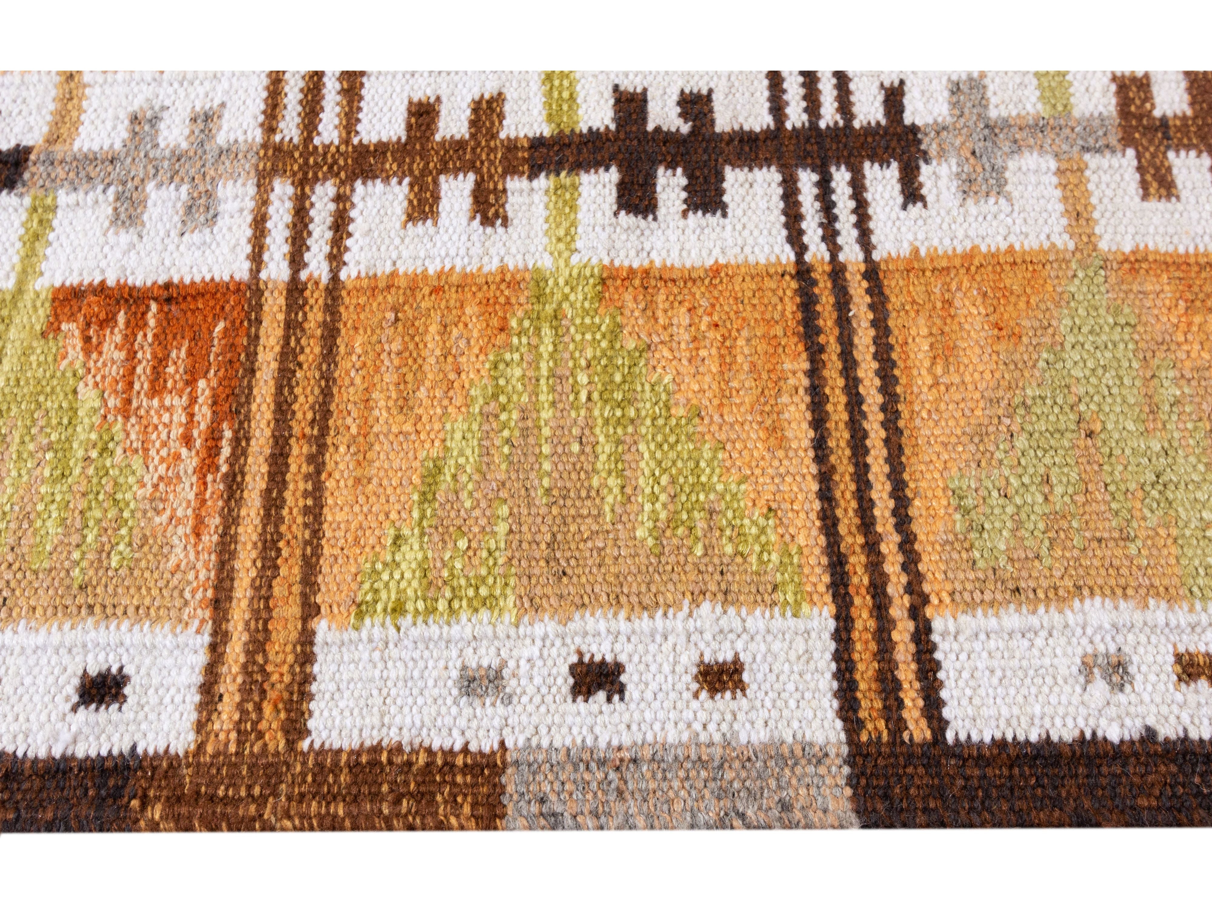 Beautiful Contemporary Swedish-Style Rug, hand-knotted wool with an orange field, brown and ivory accents in an allover geometric design.