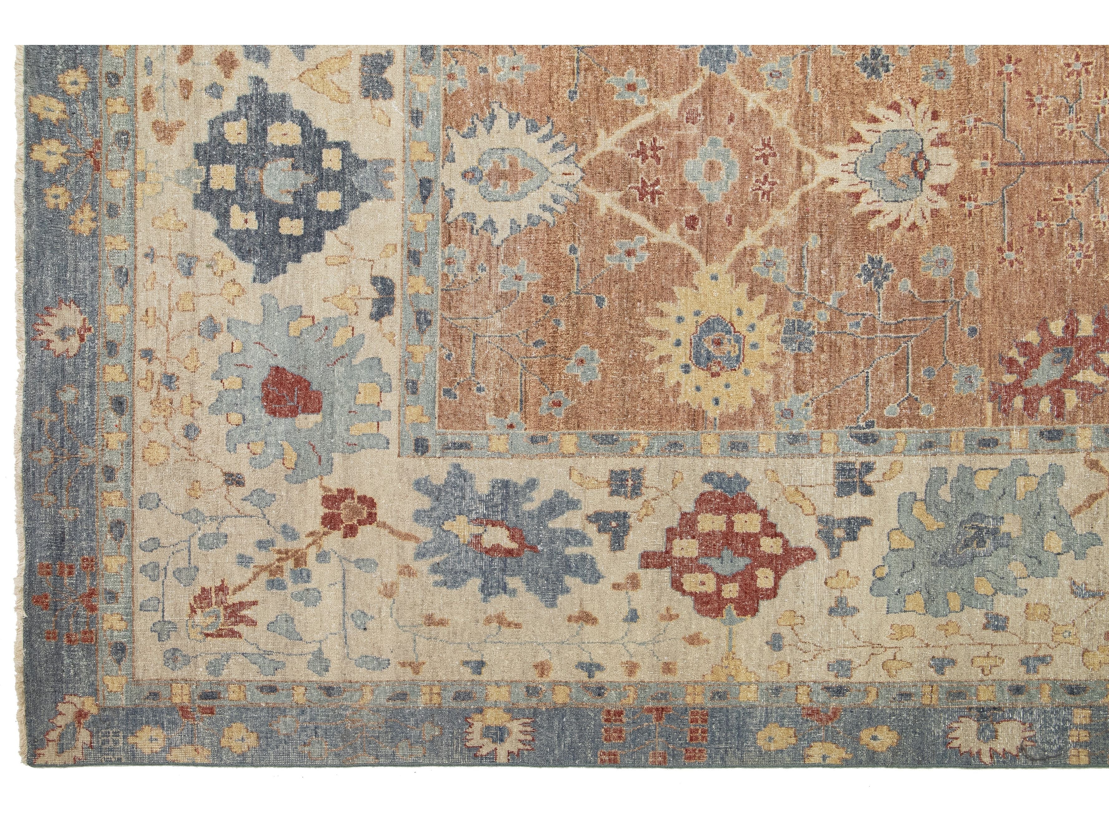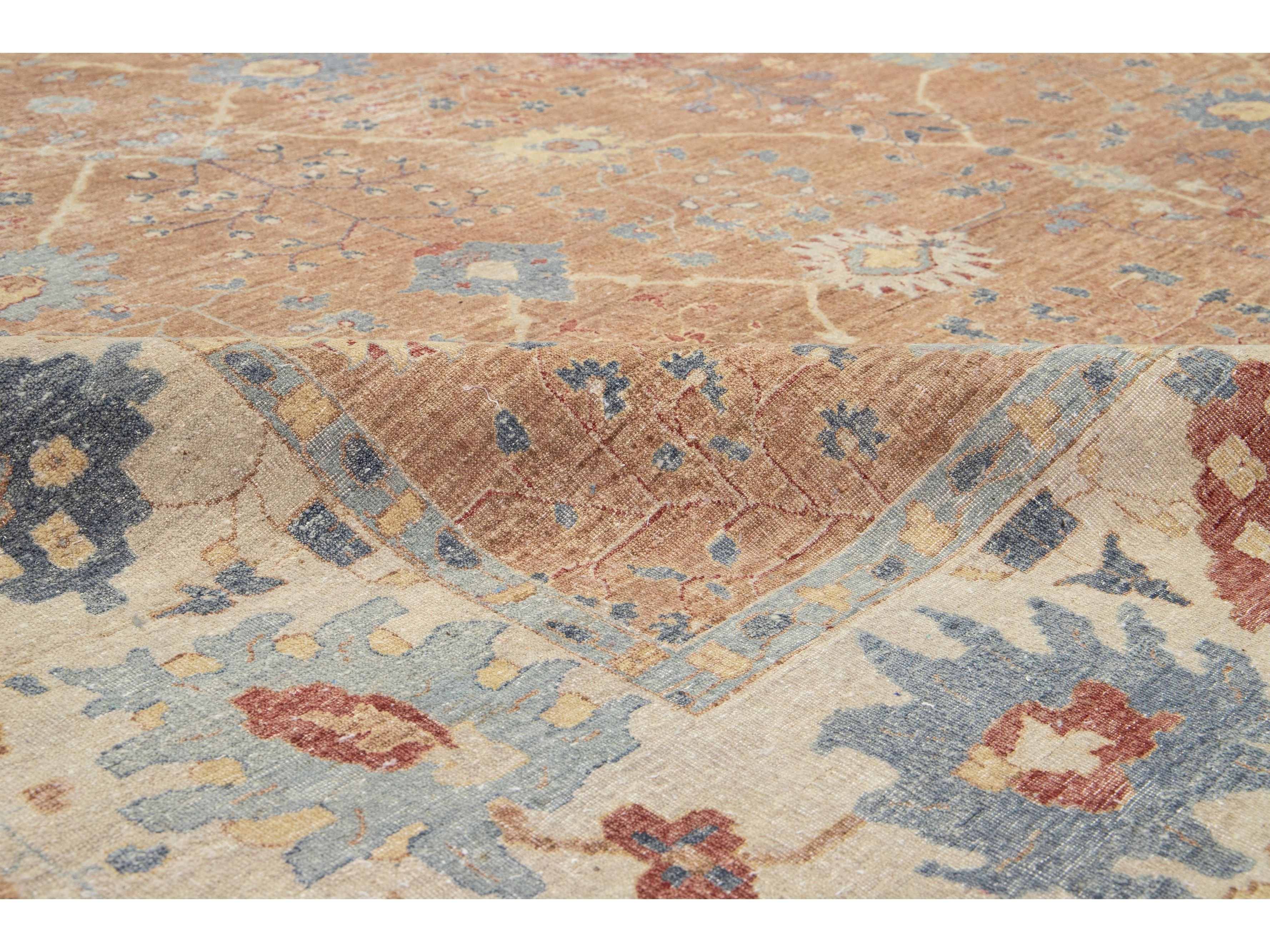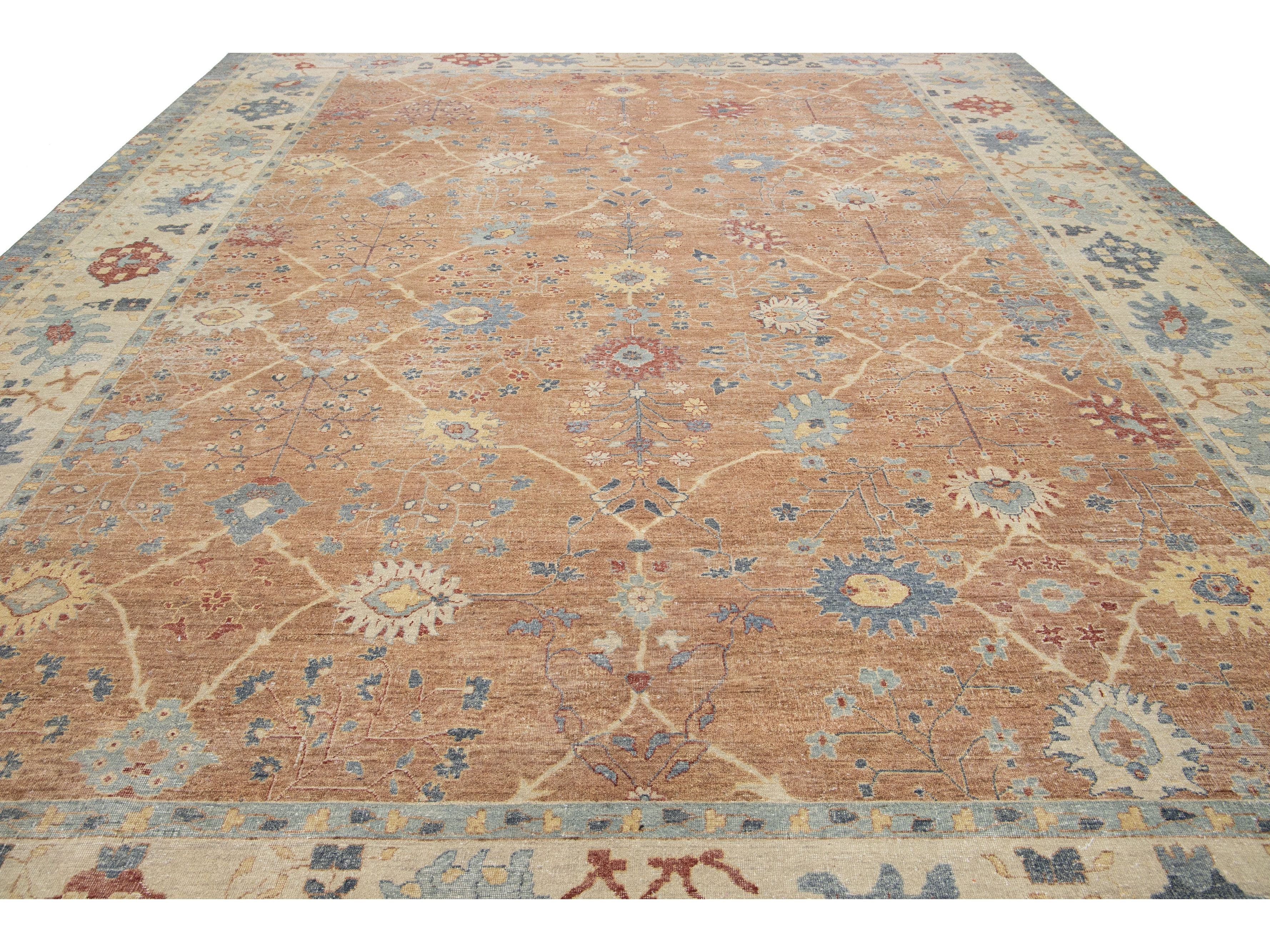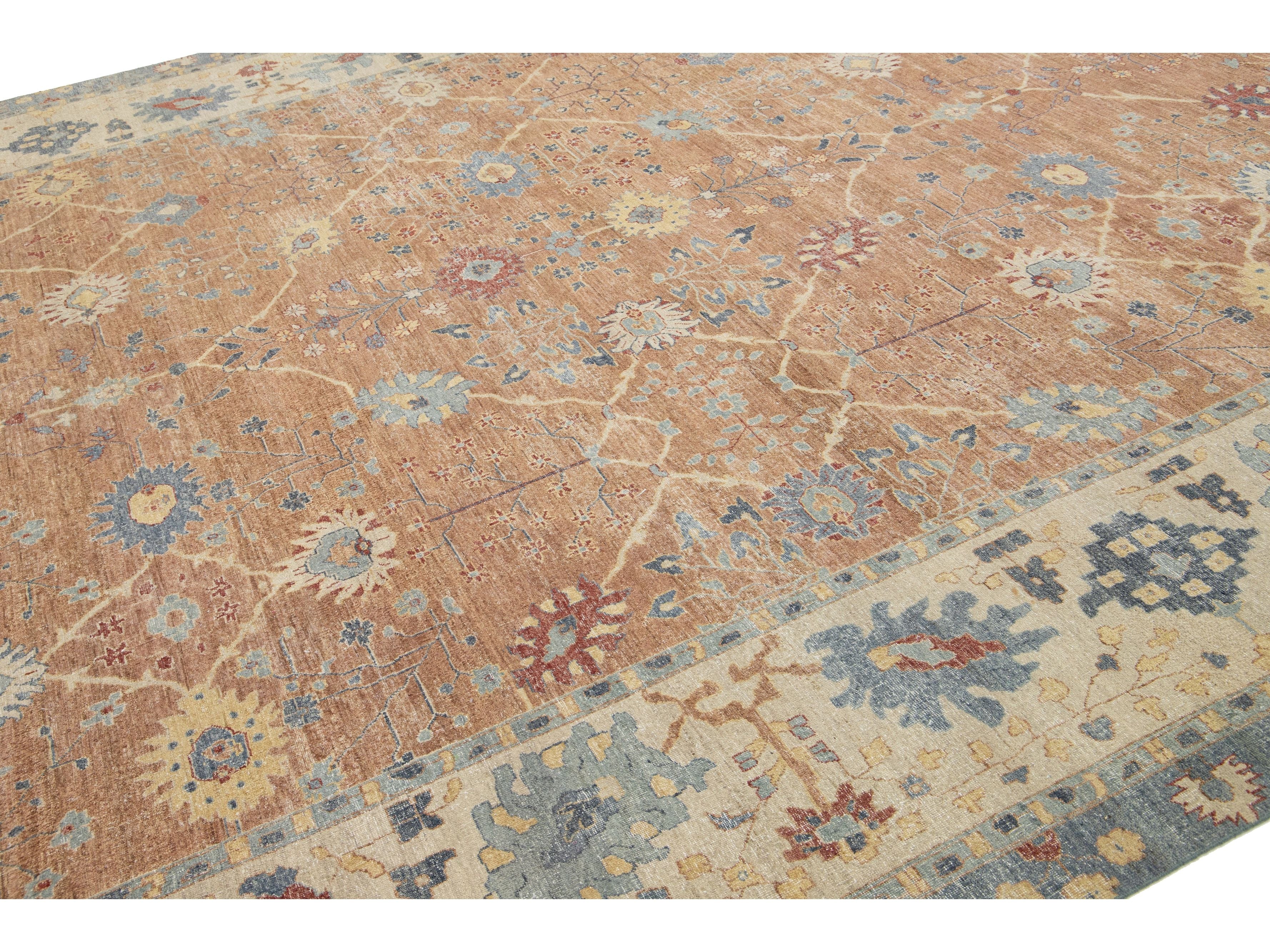Apadana's Artisan Line offers a reimagined take on antique rugs, providing an elegant way to infuse any space with a striking antique aesthetic. Each rug in this collection is uniquely crafted, transforming the traditional appearance of antique rugs. Every piece from our Artisan line is meticulously handwoven. This custom Tabriz-style rug showcases a stunning all-over design against a rich brown field. This rug measures 12'10" x 17'.