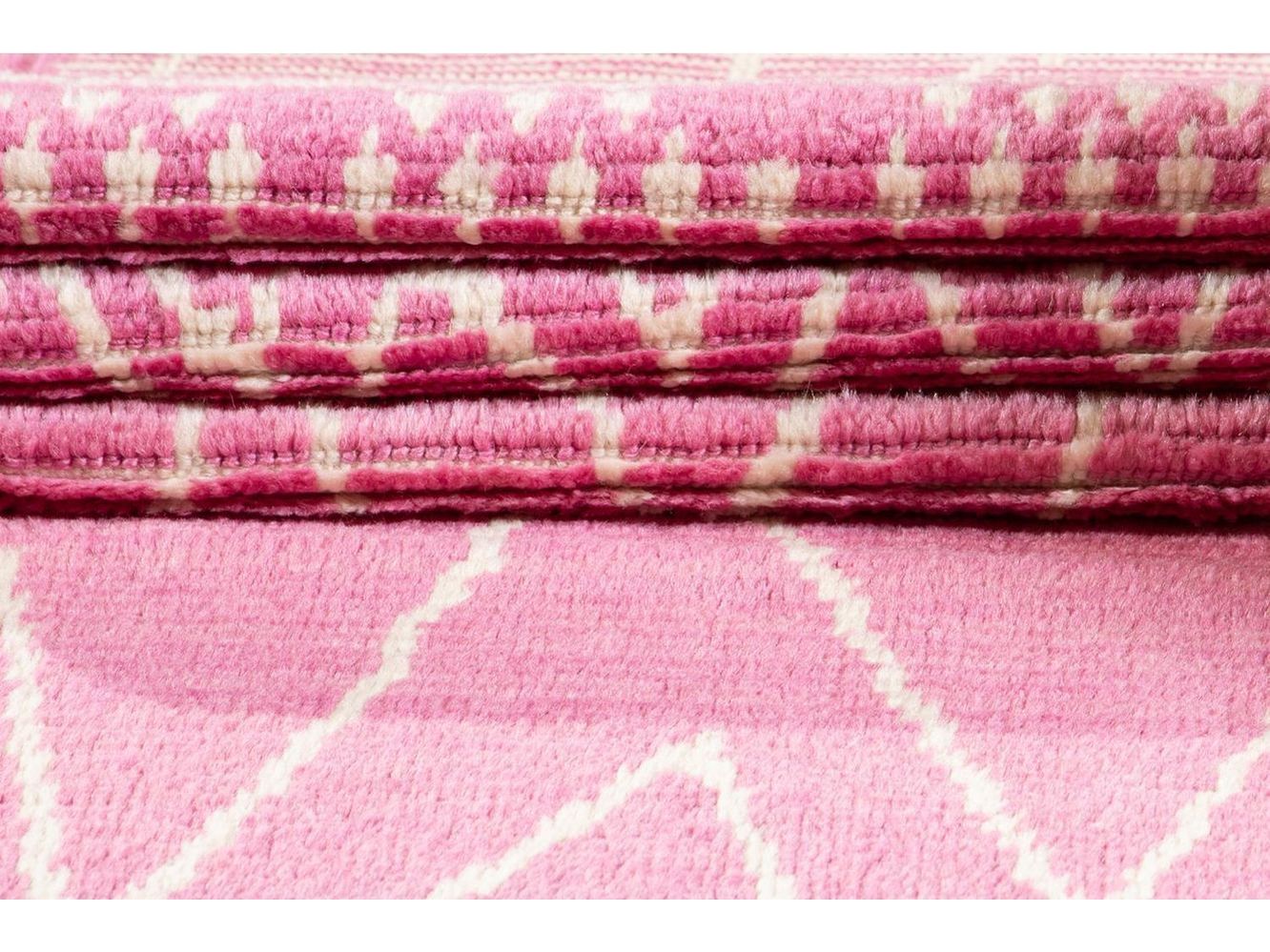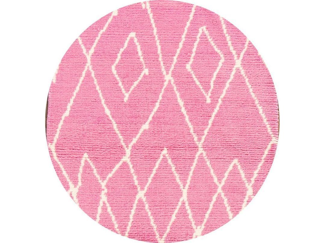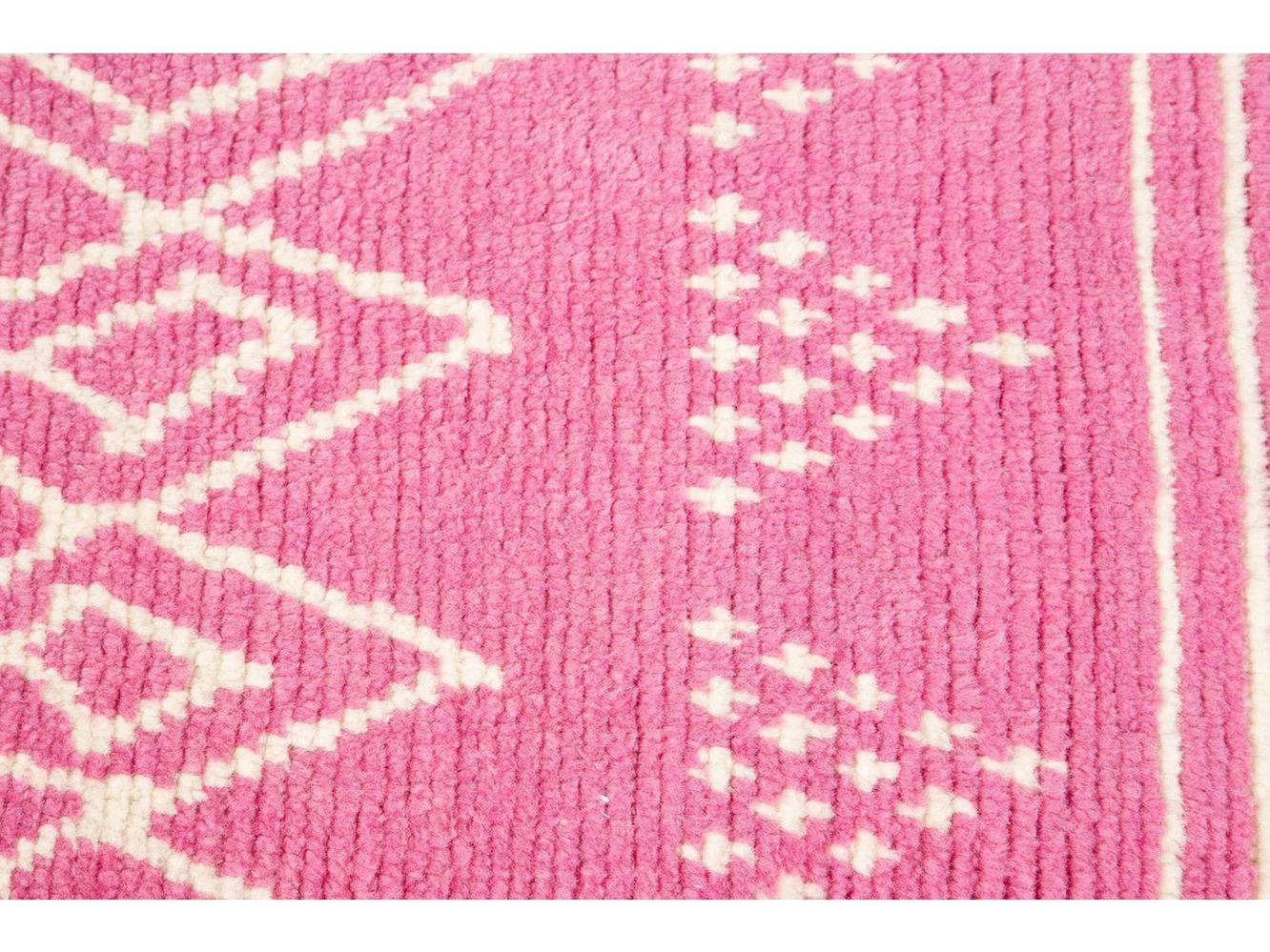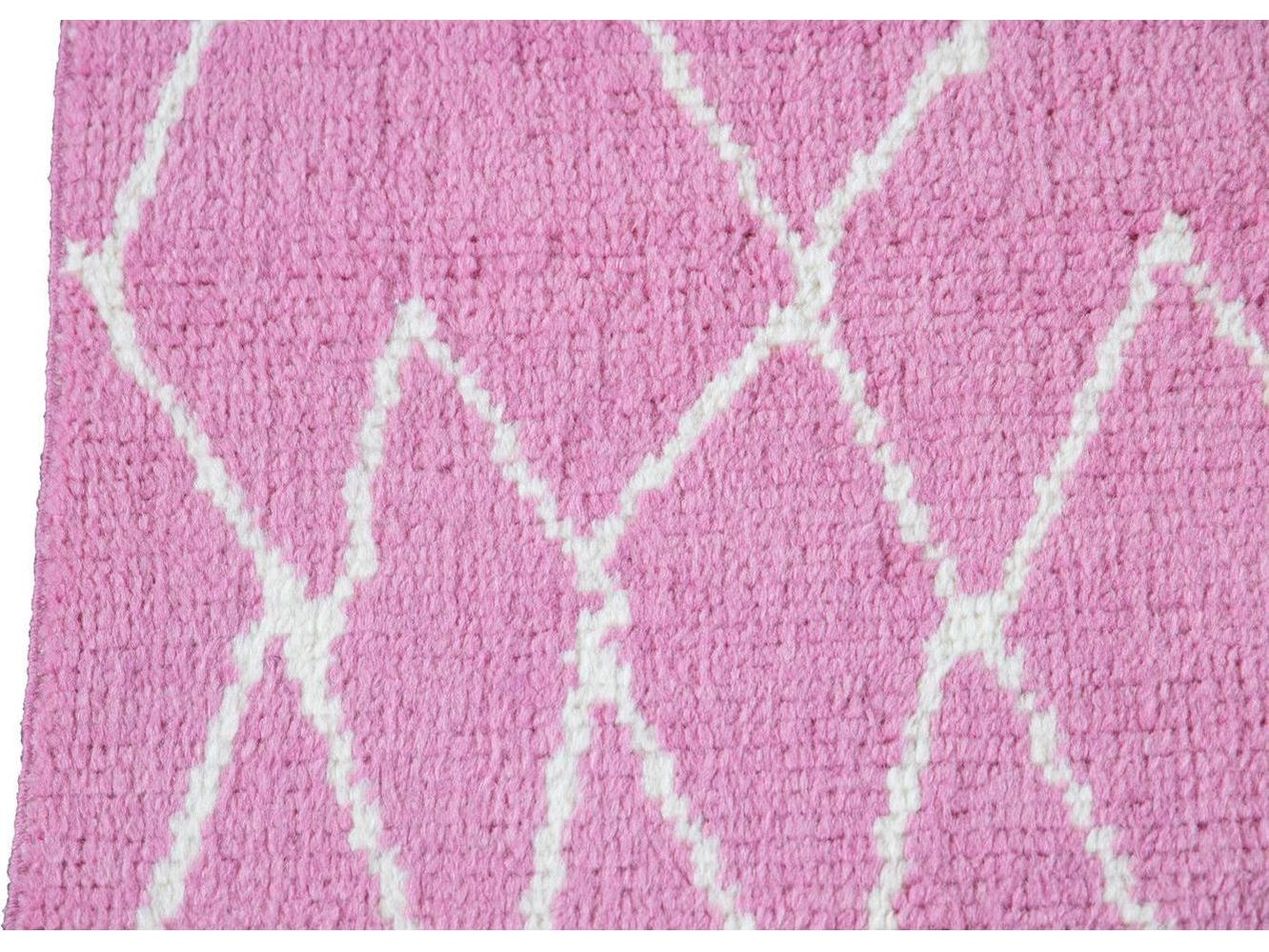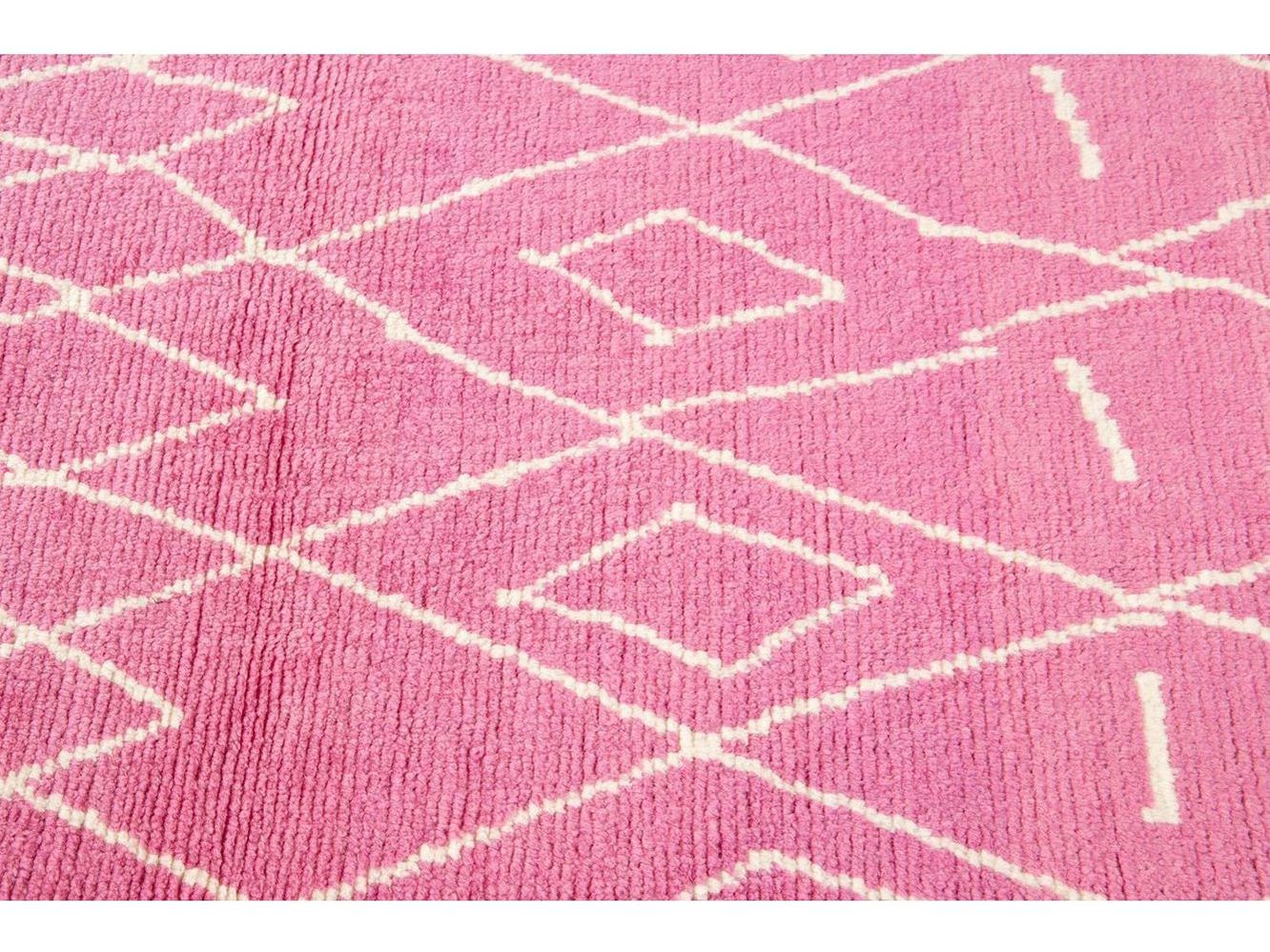 Beautiful contemporary Moroccan-style runner rug, hand-knotted wool with a pink field, ivory accents in a gorgeous all-over tribal design.