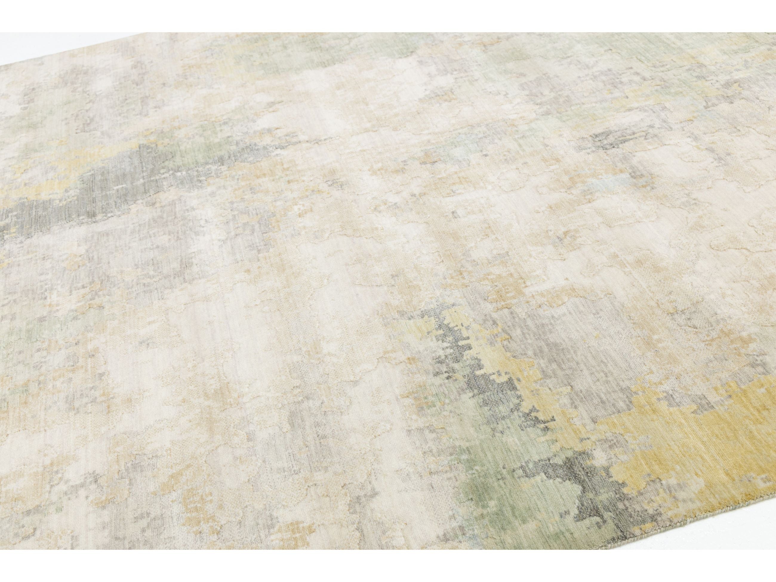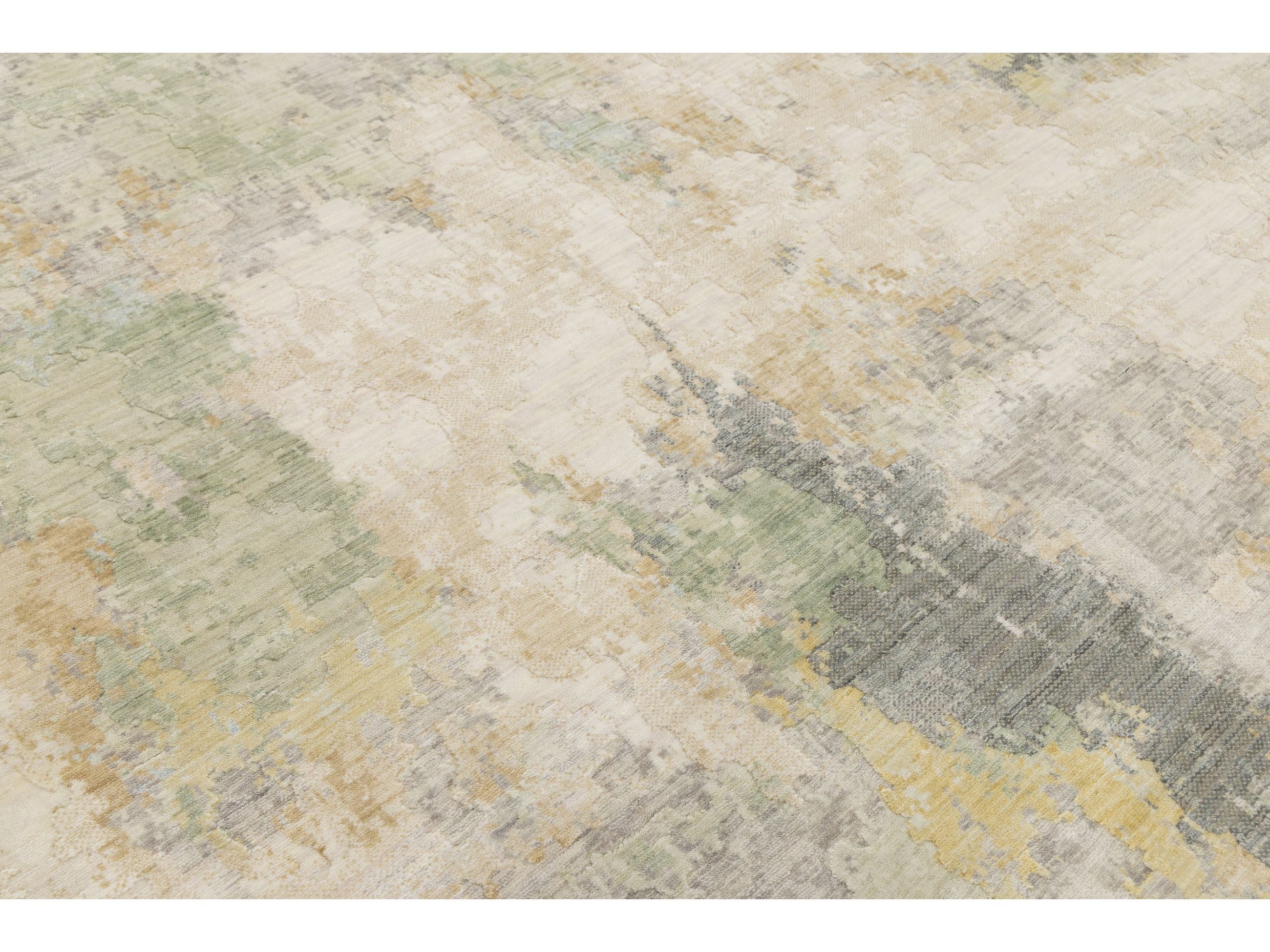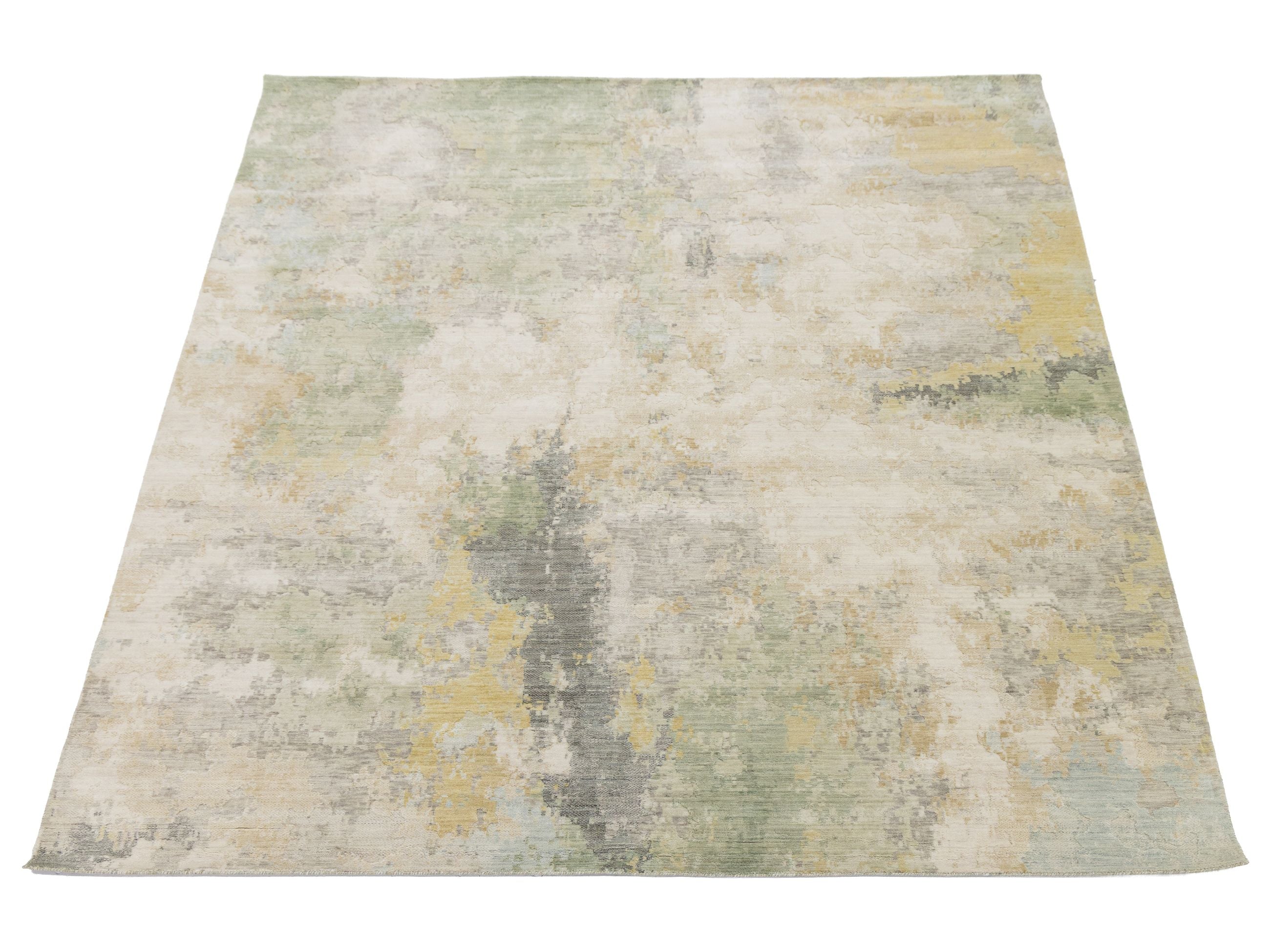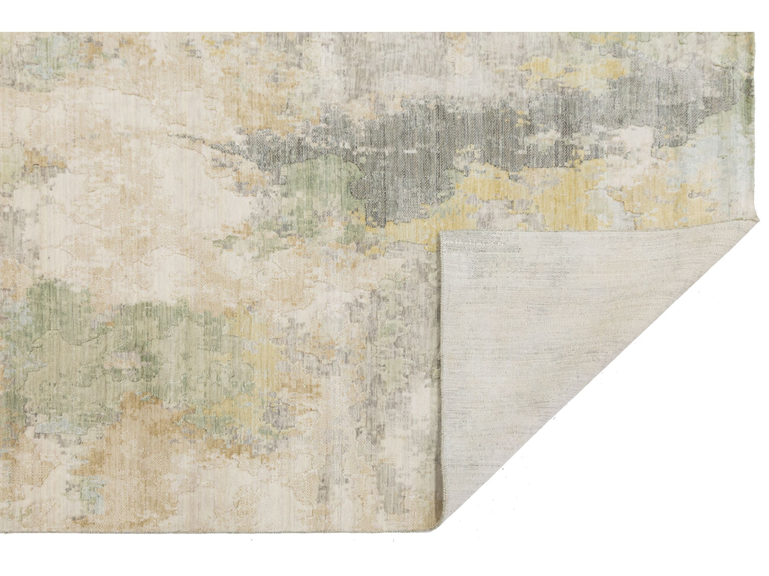 Transform your contemporary living space with this modern abstract area rug, featuring a fluid, watercolor-inspired design in soothing sage green, muted gold, and charcoal gray on a crisp ivory backdrop. Crafted from a premium wool and nylon blend, it combines wool's natural resilience with nylon's durability and subtle sheen. Ideal for high-traffic areas, this rug is a versatile addition to any minimalist or transitional interior. This rug measures 8' x 10'.