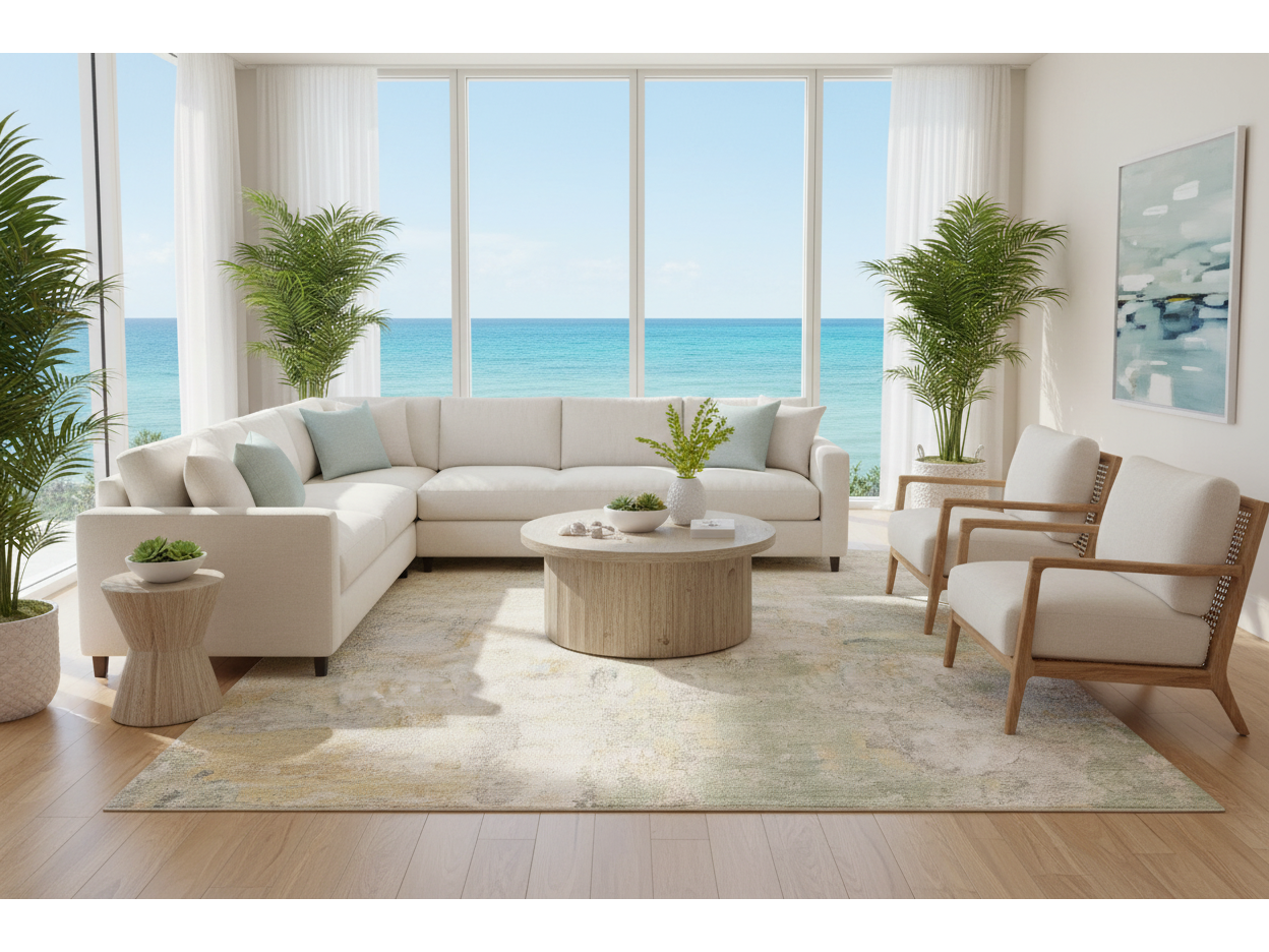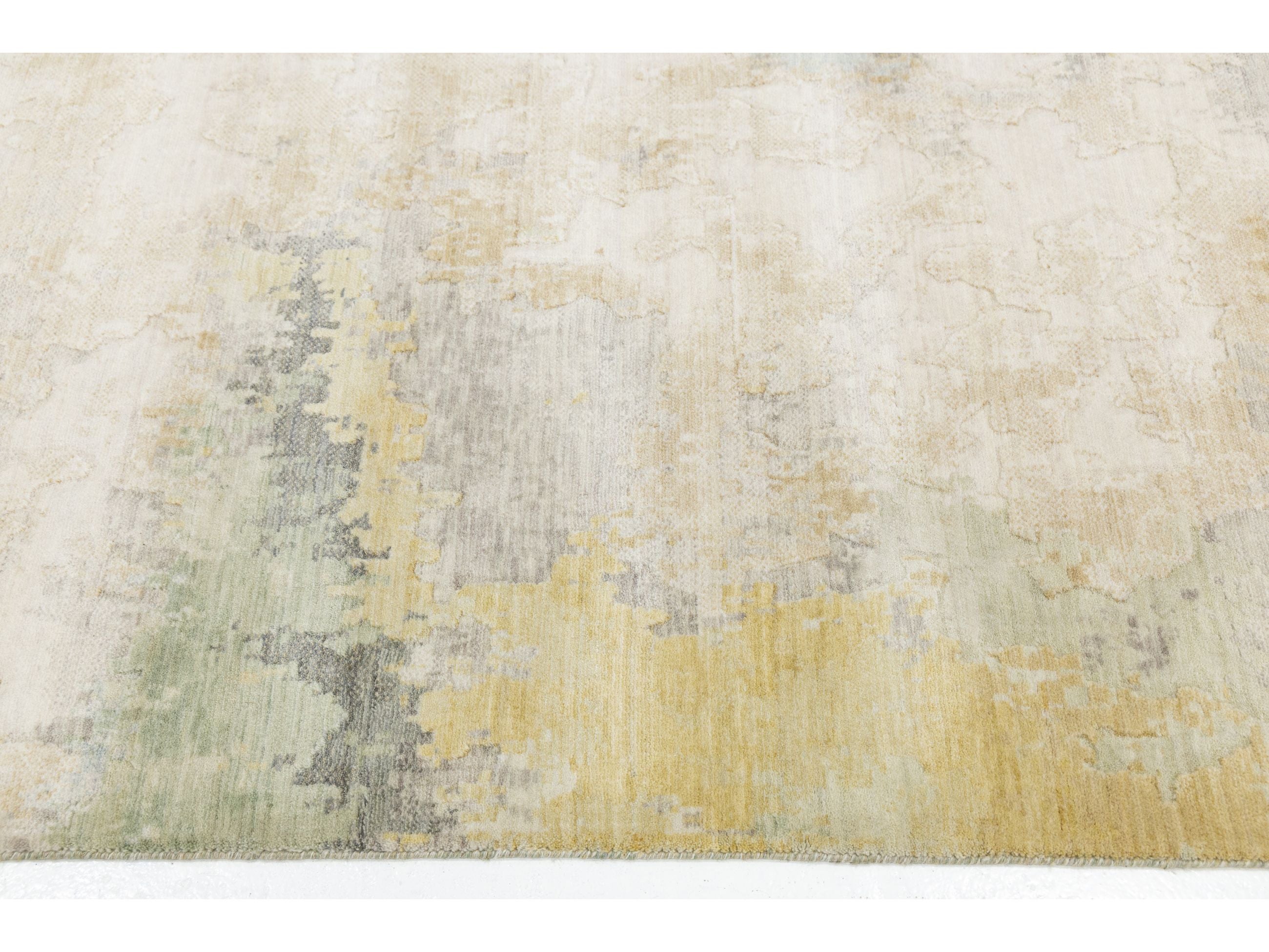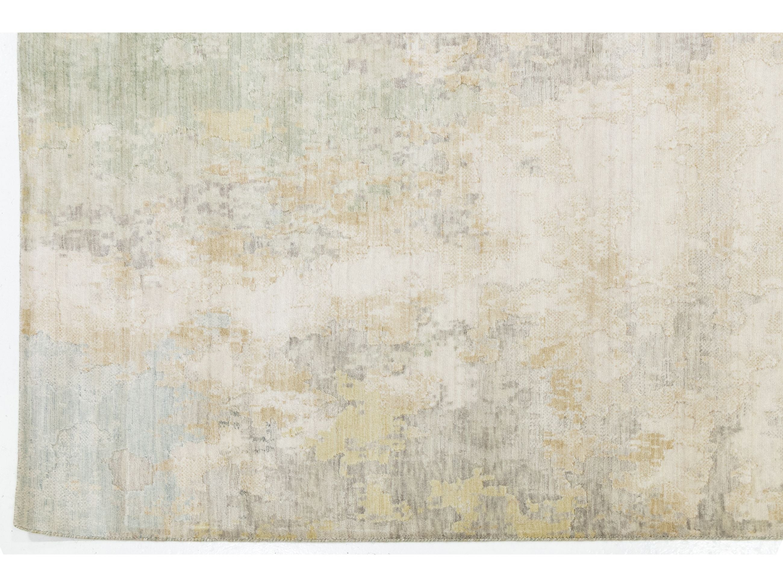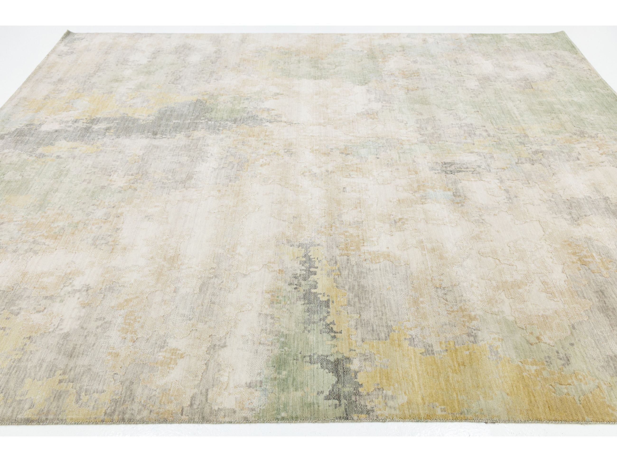 Transform your contemporary living space with this modern abstract area rug, featuring a fluid, watercolor-inspired design in soothing sage green, muted gold, and charcoal gray on a crisp ivory backdrop. Crafted from a premium wool and nylon blend, it combines wool's natural resilience with nylon's durability and subtle sheen. Ideal for high-traffic areas, this rug is a versatile addition to any minimalist or transitional interior. This rug measures 8' x 10'.